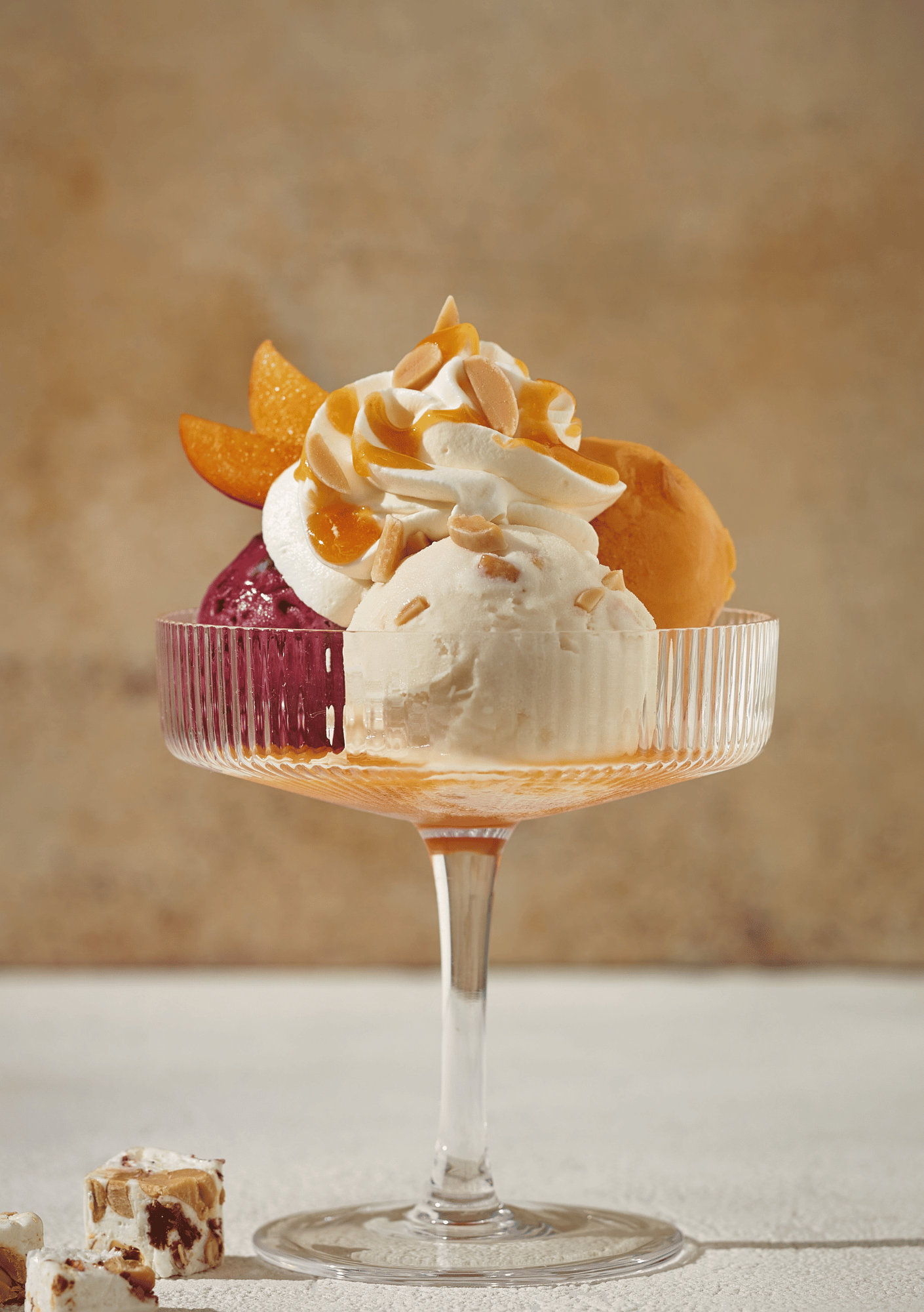 et sa Crème Glacée Nougat ainsi que ses Sorbets Abricot et Cassis